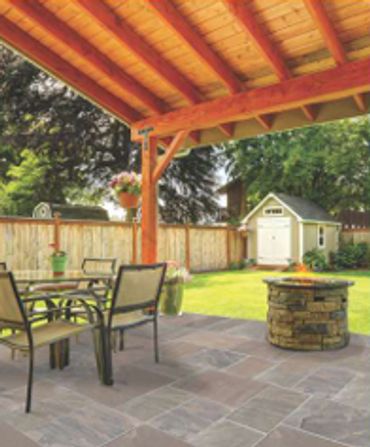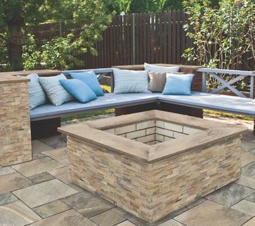 Design a stunning fire feature using natural stone fire pit kits, ledge stone, or wall stone from Johnson Rock Inc. Whether you want a modern look or a rustic setting, our stone options are perfect for circular, square, or custom-shaped fire pits that will last fo
